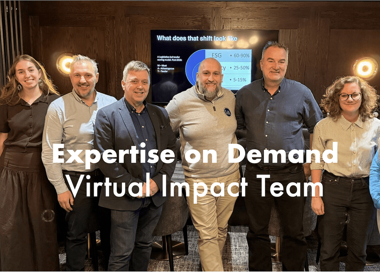 The biggest risk in sustainability isn’t the challenge of emissions reporting — it’s being too slow or too opaque to win trust, tenders or commercial opportunities. Your Virtual Impact Team team helps you build evidence and reporting that buyers actually rely on, moving you from “we’re working on it” to “here’s the proof we delivered.” This is the same strategic principle that enables organisations to win trust and win work, transforming sustainability from a compliance burden into a growth driver.