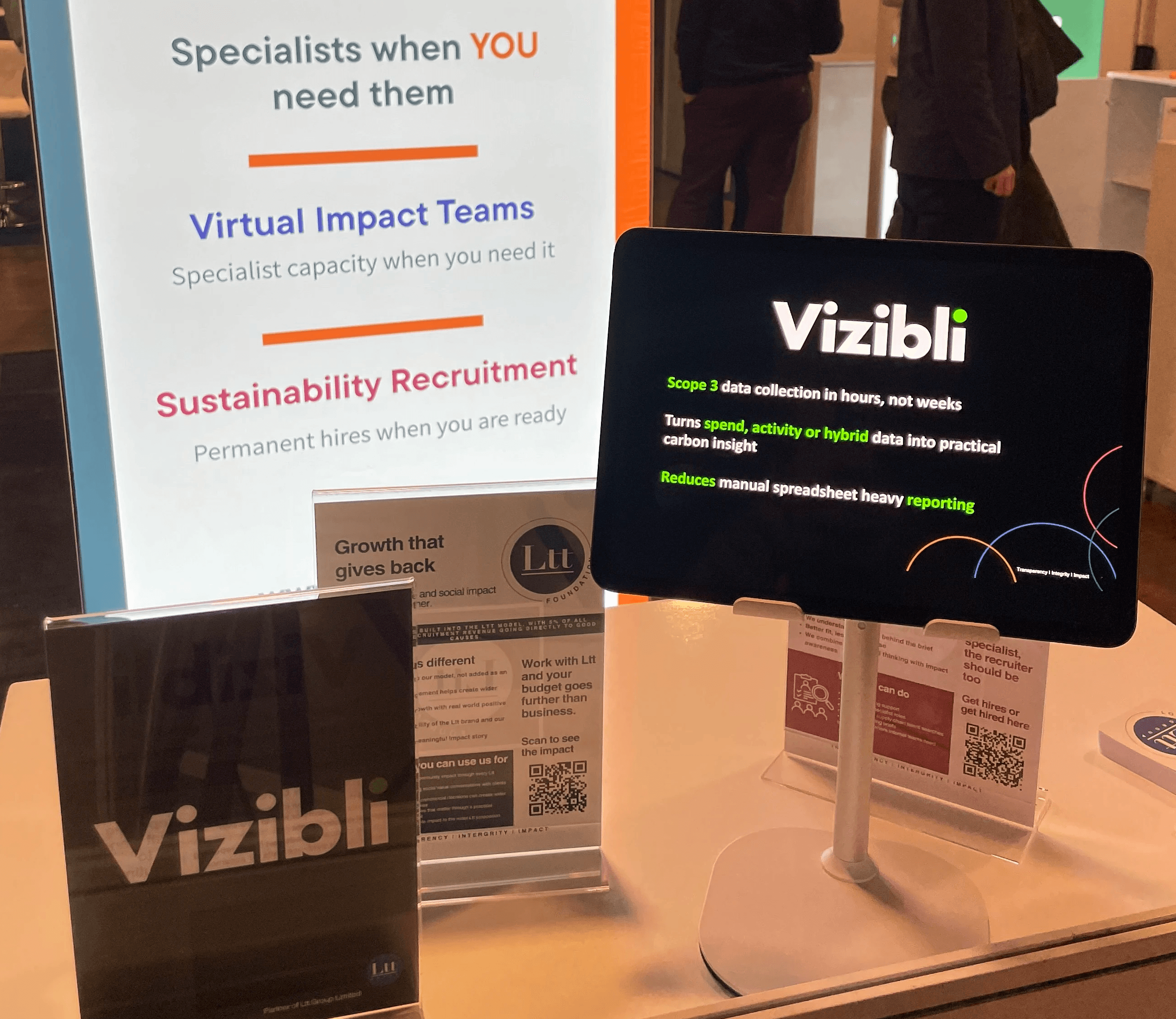At Reset Connect North, Leeds, Vizibli showcased its partnership with Ltt Group, whose Virtual Impact Team gives SMEs on-demand access to 20+ years of sustainability expertise for just £1,300 per ten-hour bank — no full-time hire, no expensive consultant.